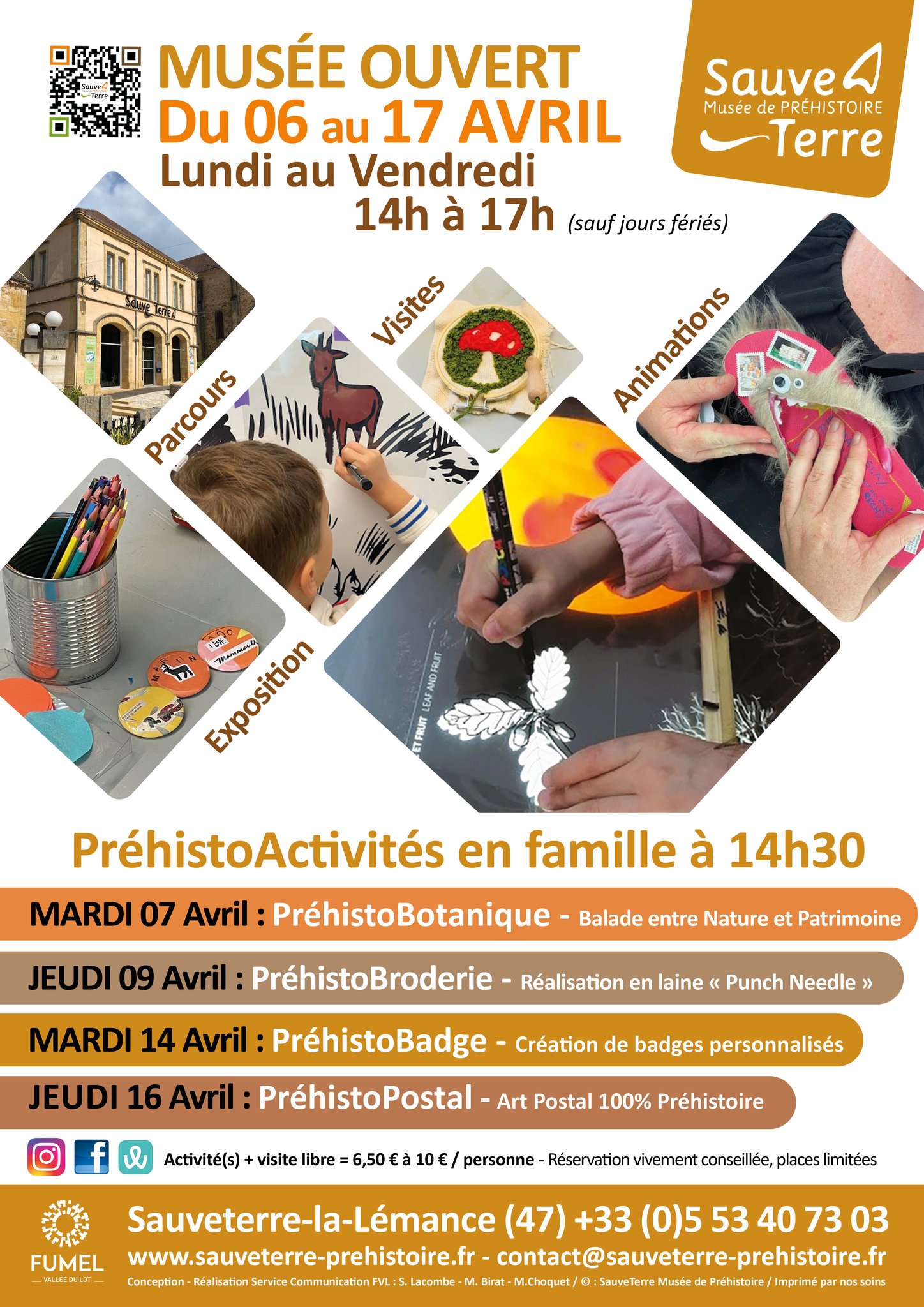 Le musée de préhistoire SauveTerre réouvre pour les vacances de Printemps 2026. Du 06 au 17 avril, du lundi au vendredi de 14h à 17h (sauf jours fériés), à Sauveterre-la-Lémance.