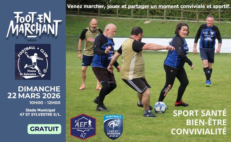 Le FCPSS organise une activité sportive et gratuite de "Foot en Marchant", dimanche 22 mars de 10h à 12h au stade municipal de Saint-Sylvestre-sur-Lot.