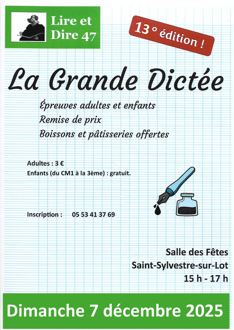 L'association Lire et Dire 47, à Saint-Sylvestre-sur-Lot, organise pour la 13ème année consécutive la Grande Dictée, destinée aux adultes et une autre aux enfants (du CM1 à la 3ème).