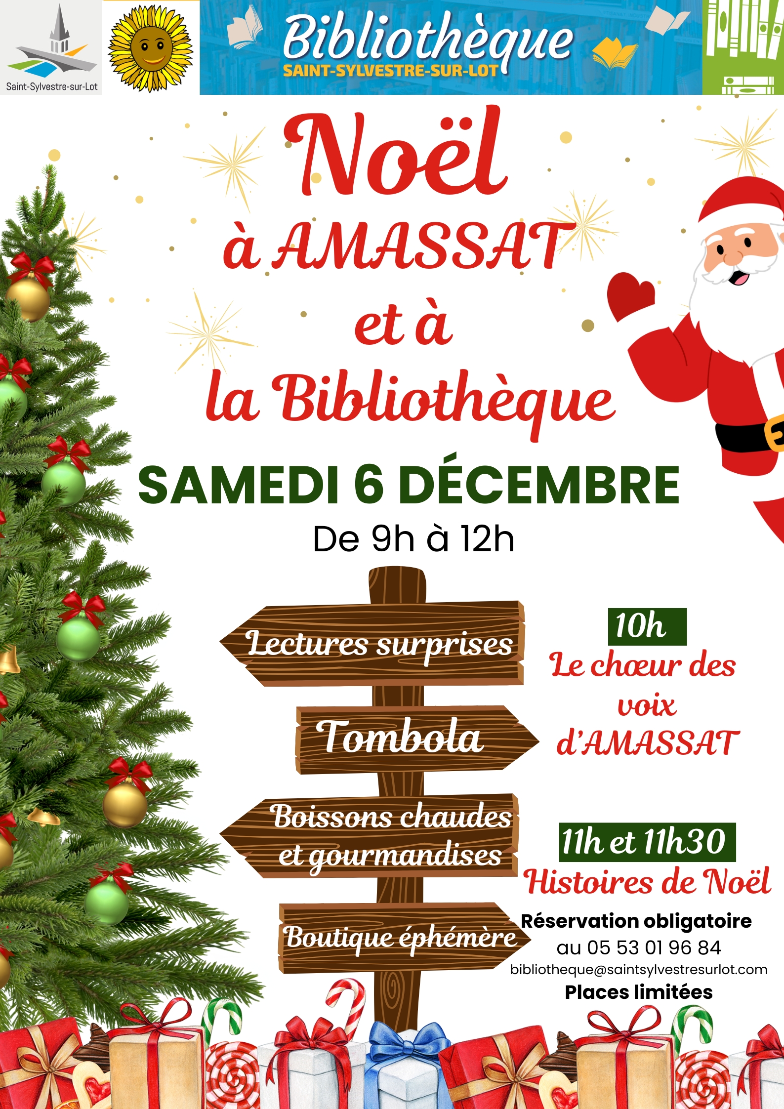 La bibliothèque municipale s’associe à AMASSAT pour une matinée de Noël qui se déroulera dans leurs locaux le samedi 6 décembre de 9h à 12h.